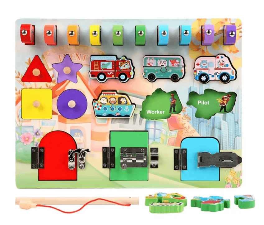 🔹 Уникальный дизайн: элементы с замками, защелками и пазлами, которые точно увлекут вашего ребенка.