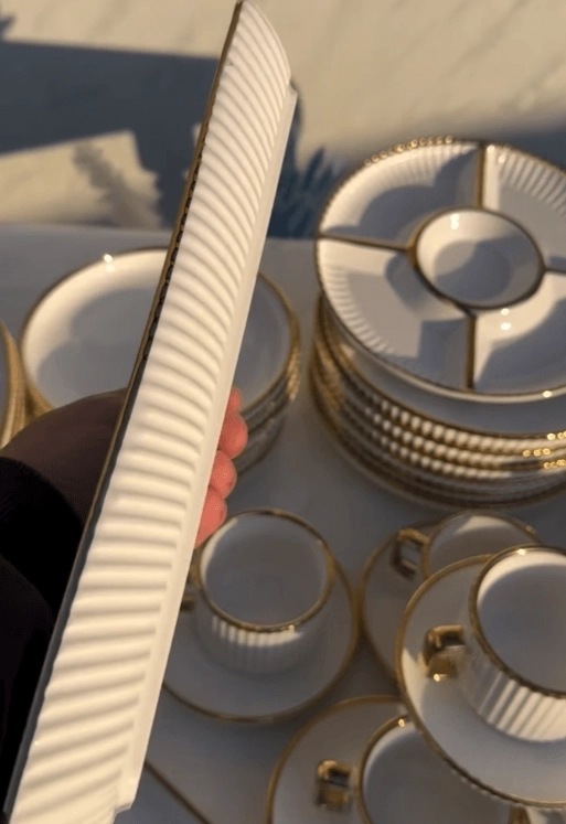 Сервиз на 6 персон 40 предметов белая рифленая керамика с каймой